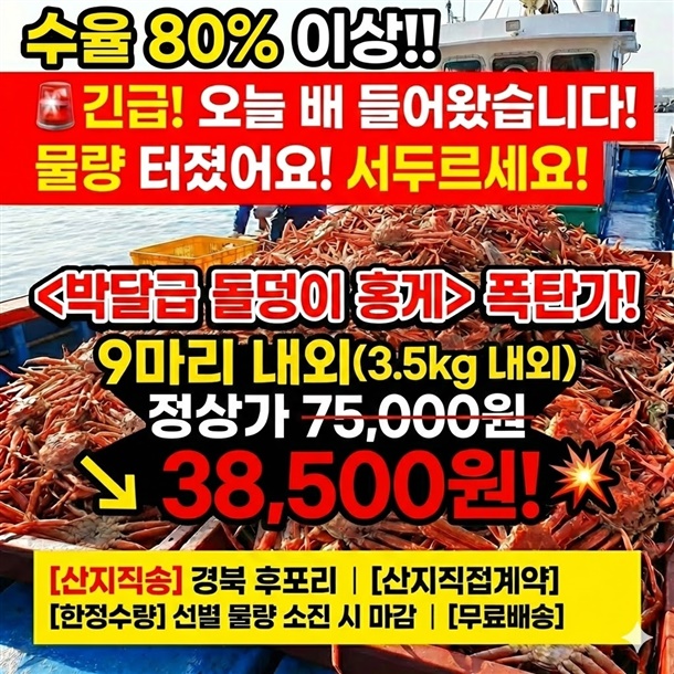 수율80%이상 최상급 홍게!!