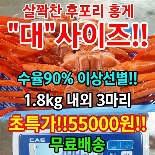 수율 90%이상 선별한 최상급 대사이즈 홍게 입니다.