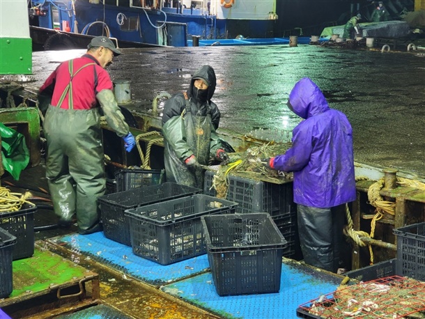 서해안에서 당일 조업 되는 꽃게 바로 건져 오는