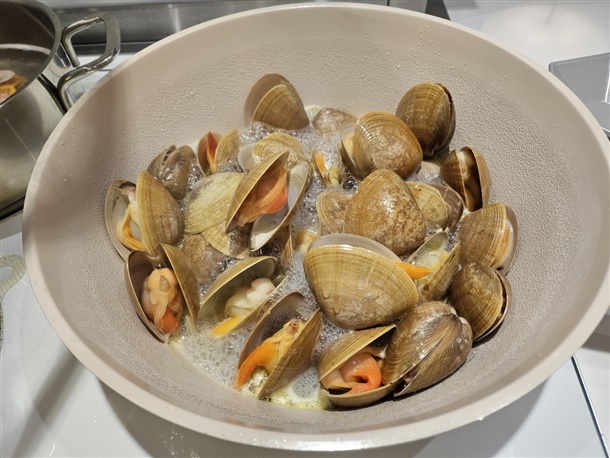 원한 조개탕 끓여 드시고, 남은 건 살만 발라내어